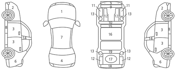 | ⑬ 교환, 판금 등 이상 부위 | 가격조사ㆍ산정액 및 특기사항 | ||||||